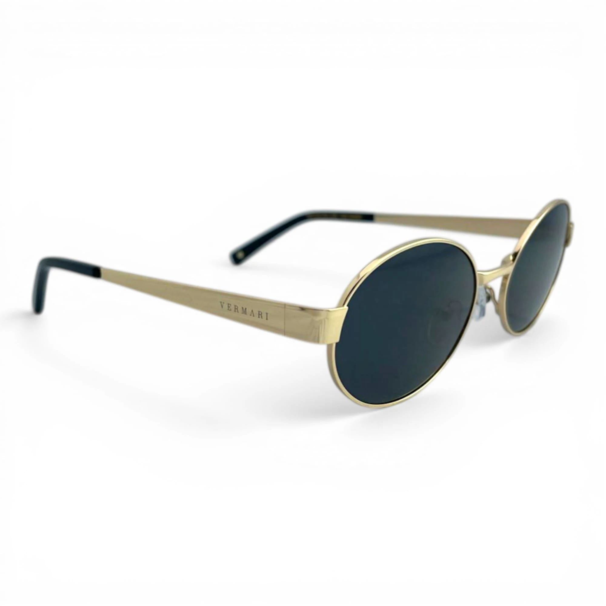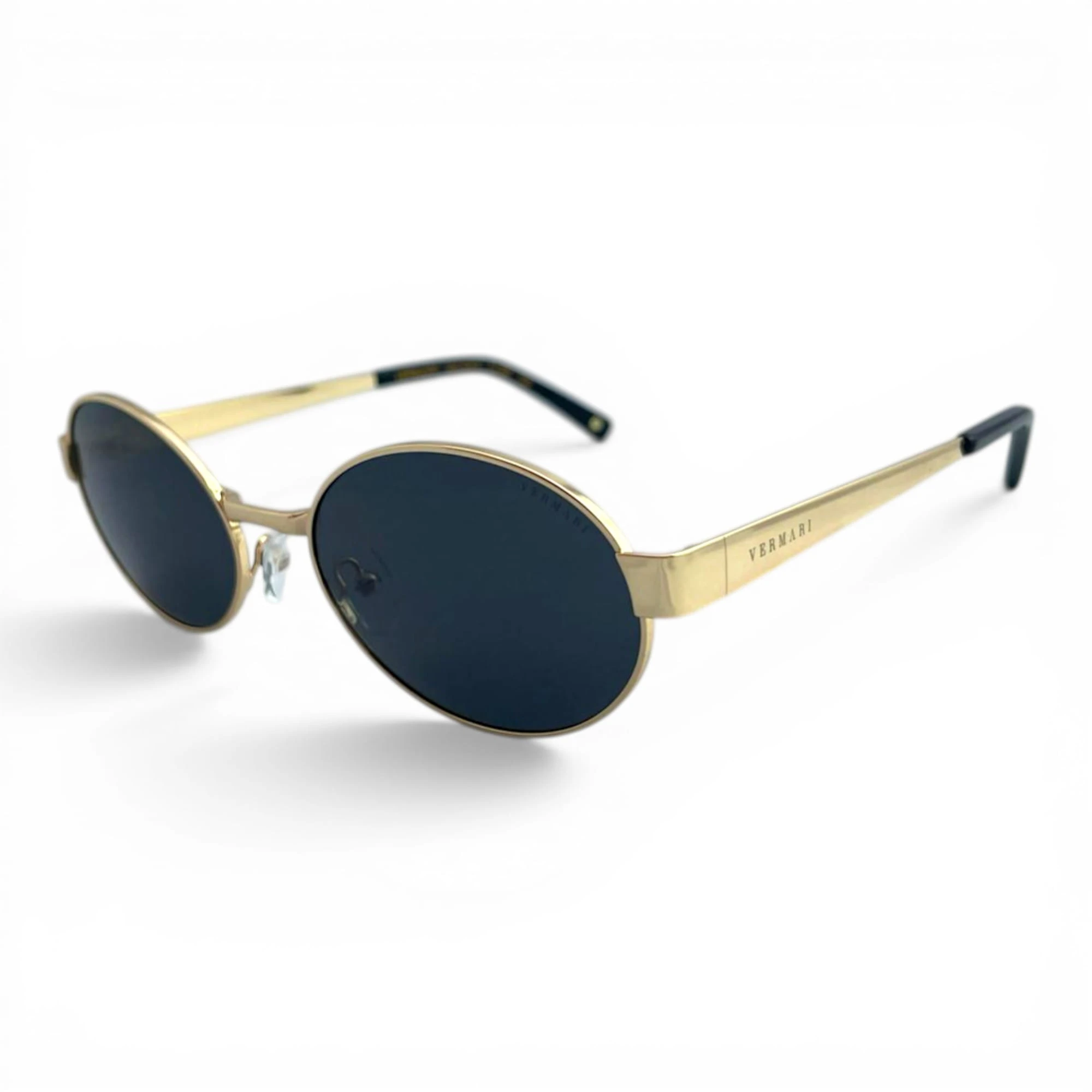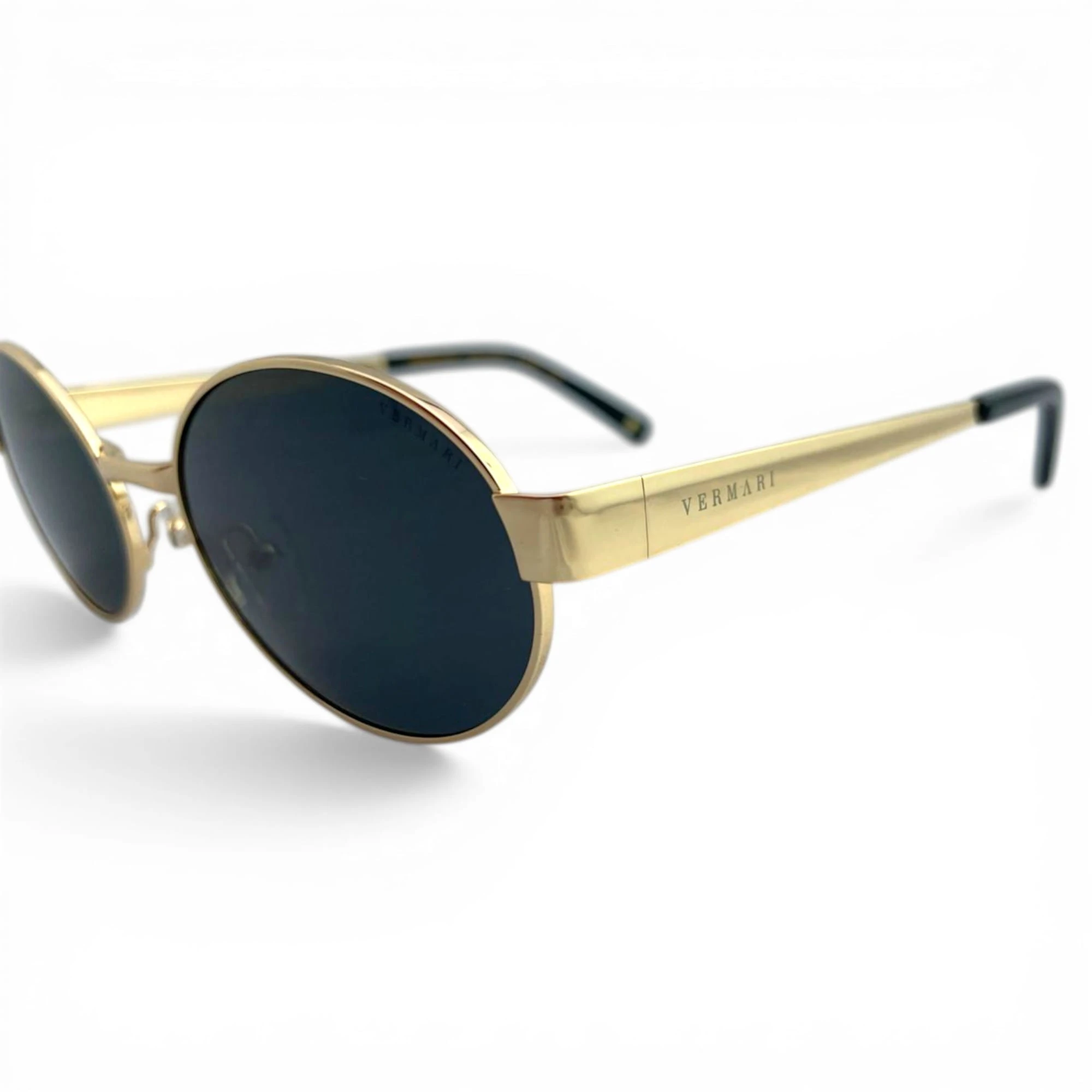 Damskie okulary przeciwsłoneczne Vermari Milano ALBA C2 to elegancki model o delikatnym, owalno-okrągłym fasonie, wykonany z bezniklowego, hipoalergicznego metalu w ciemnym wykończeniu ze złotymi akcentami. Ciemne soczewki z polaryzacją, filtrem UV400 i wewnętrzną powłoką AR zapewniają komfort widzenia, skuteczną ochronę oczu i subtelny styl premium na co dzień.