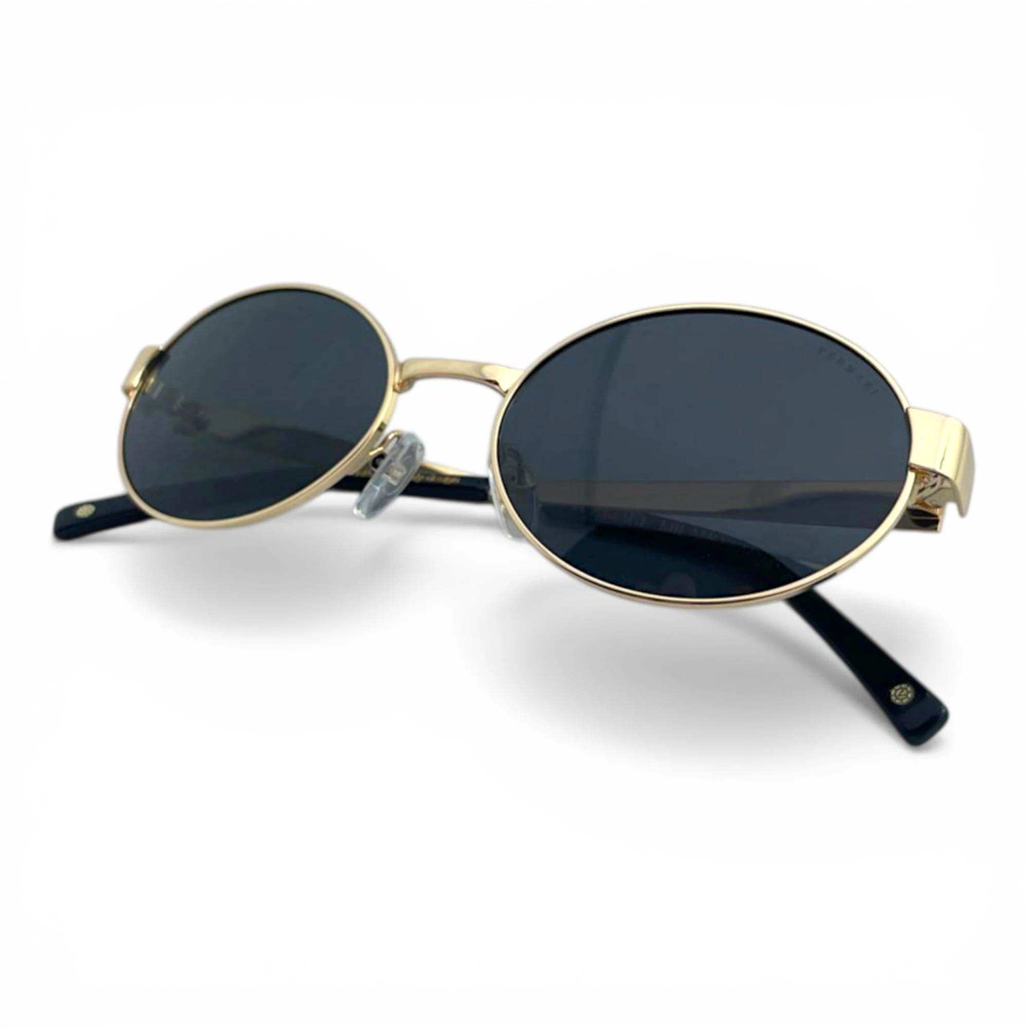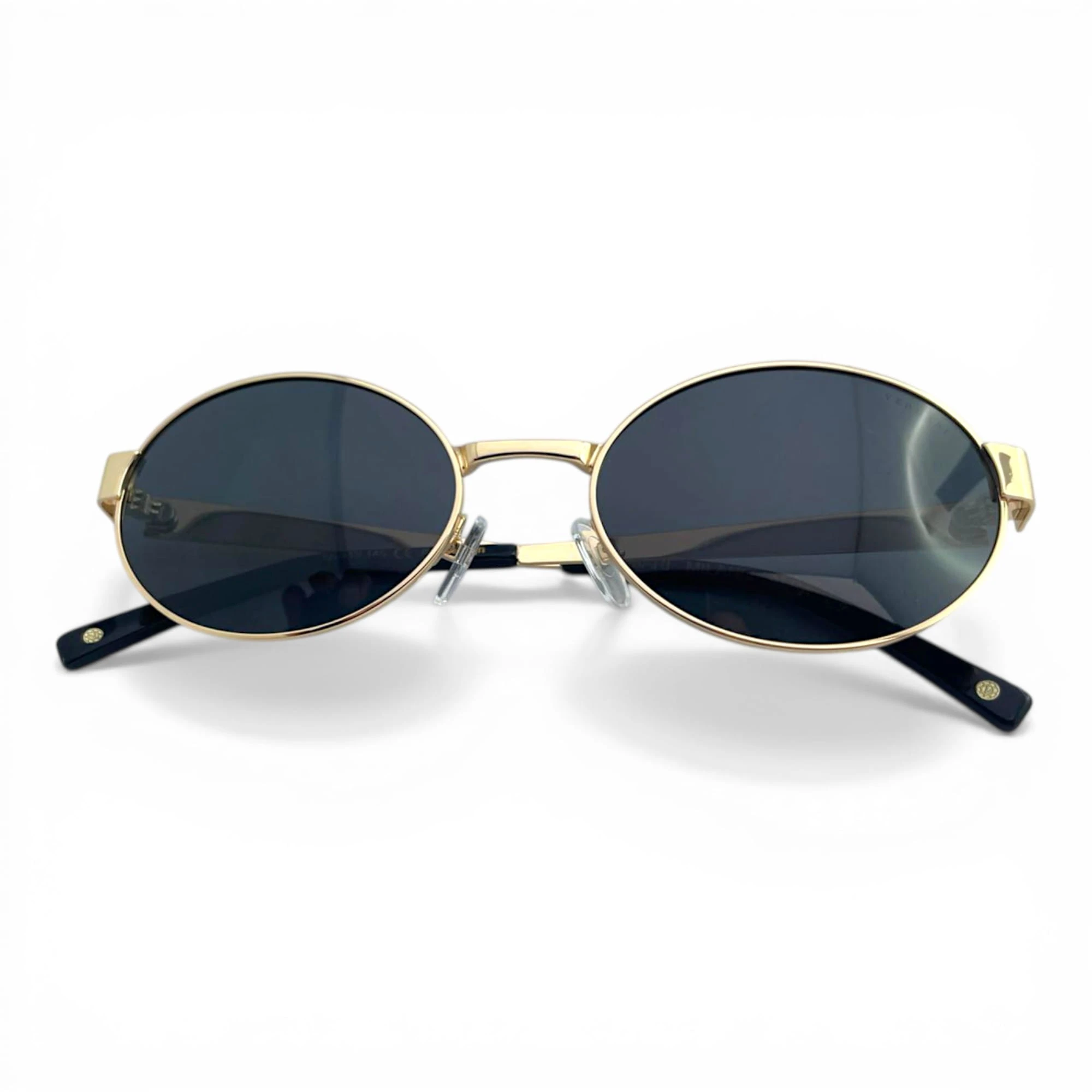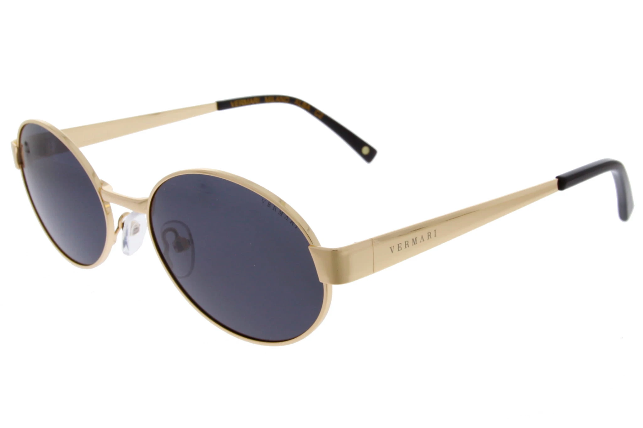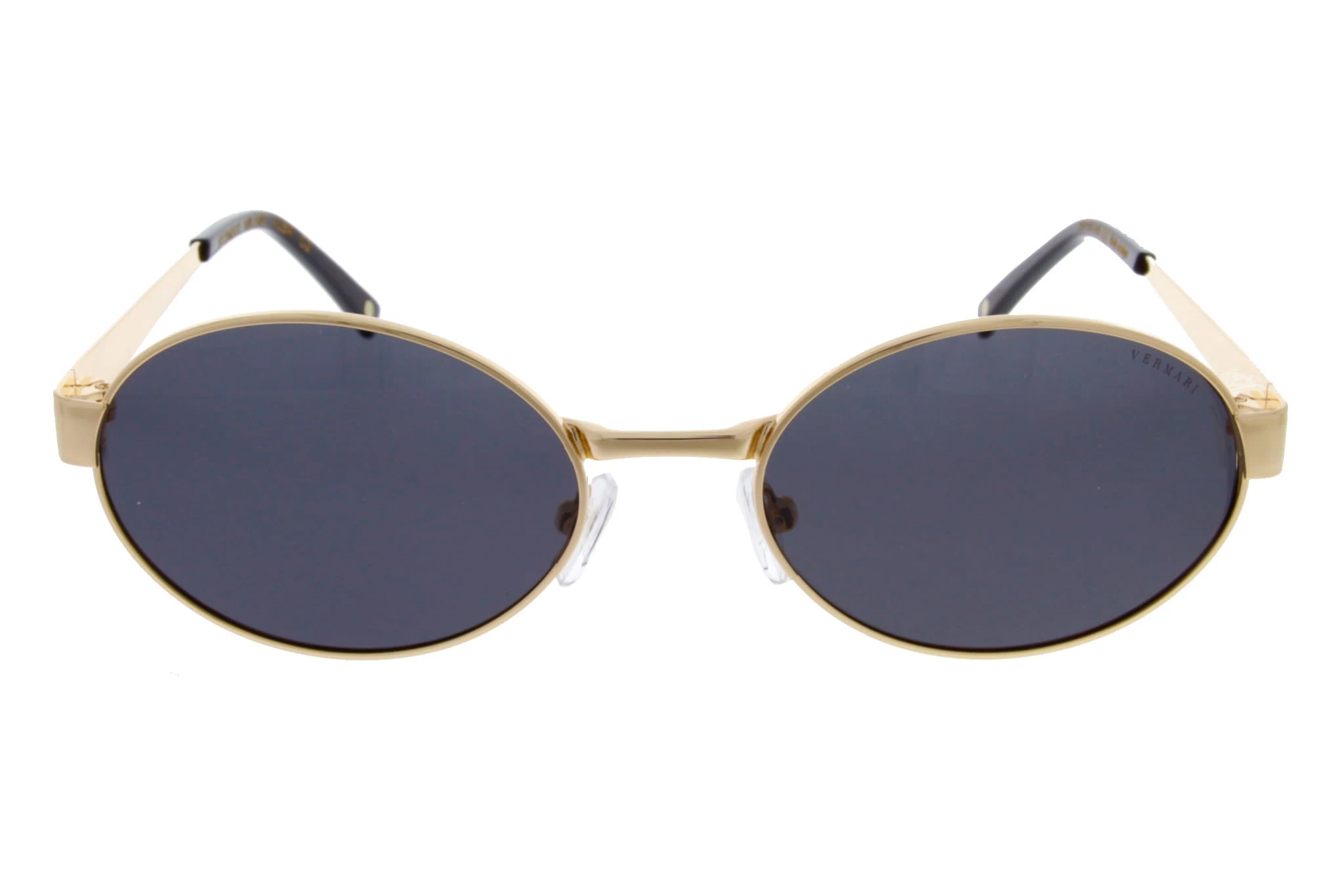 Damskie okulary przeciwsłoneczne Vermari Milano ALBA C2 to elegancki model o delikatnym, owalno-okrągłym fasonie, wykonany z bezniklowego, hipoalergicznego metalu w ciemnym wykończeniu ze złotymi akcentami. Ciemne soczewki z polaryzacją, filtrem UV400 i wewnętrzną powłoką AR zapewniają komfort widzenia, skuteczną ochronę oczu i subtelny styl premium na co dzień.