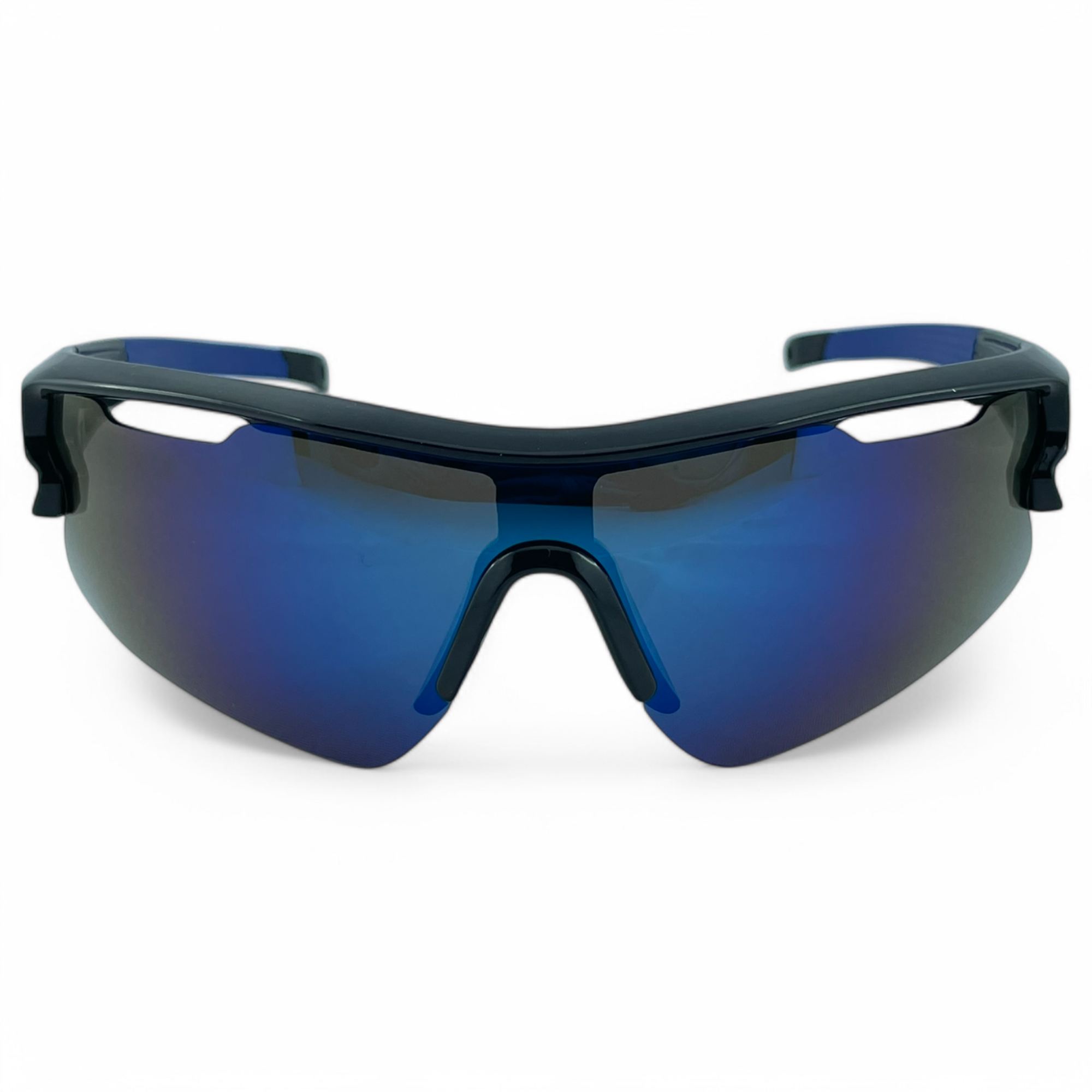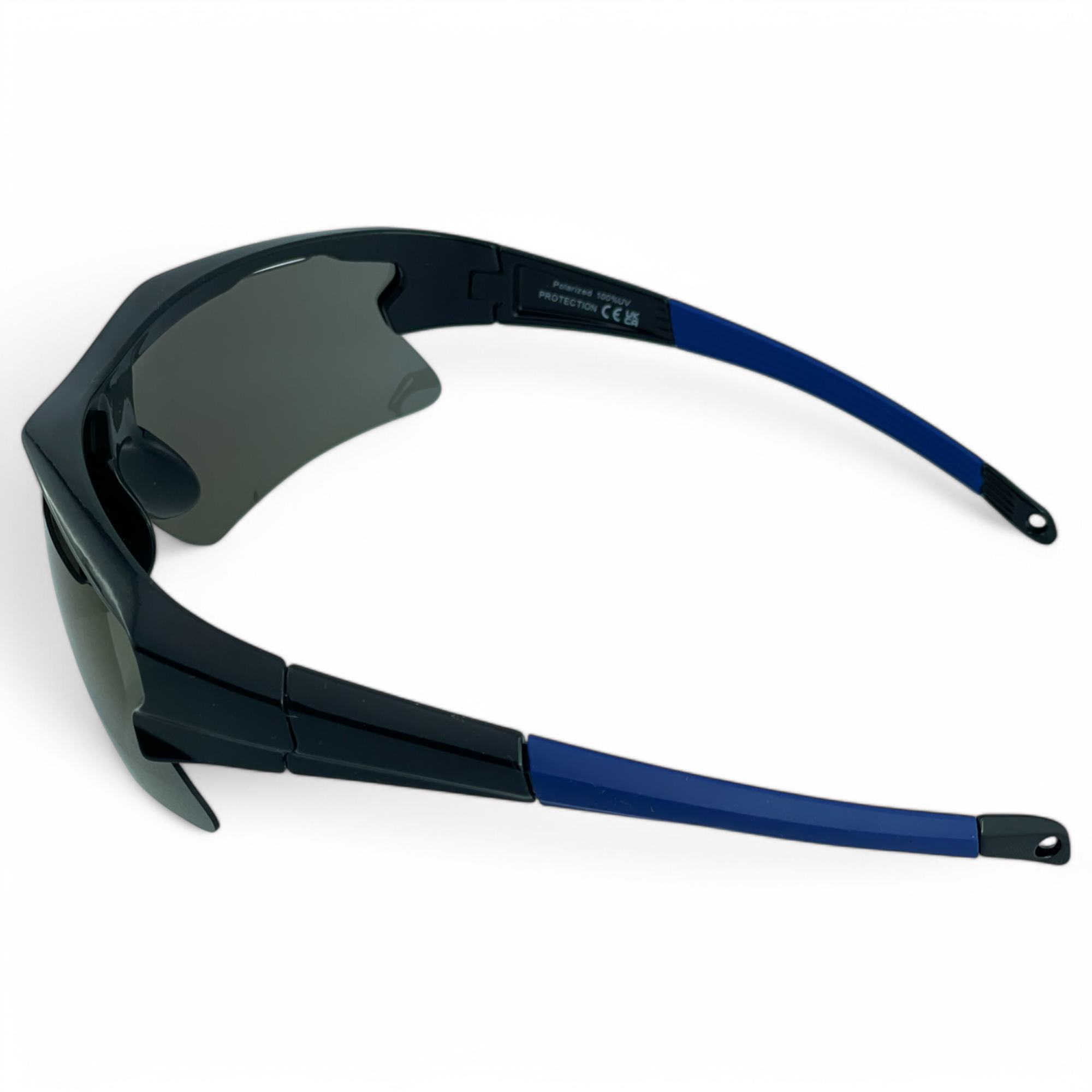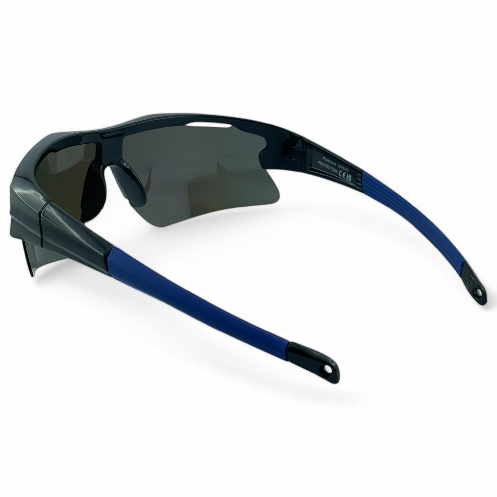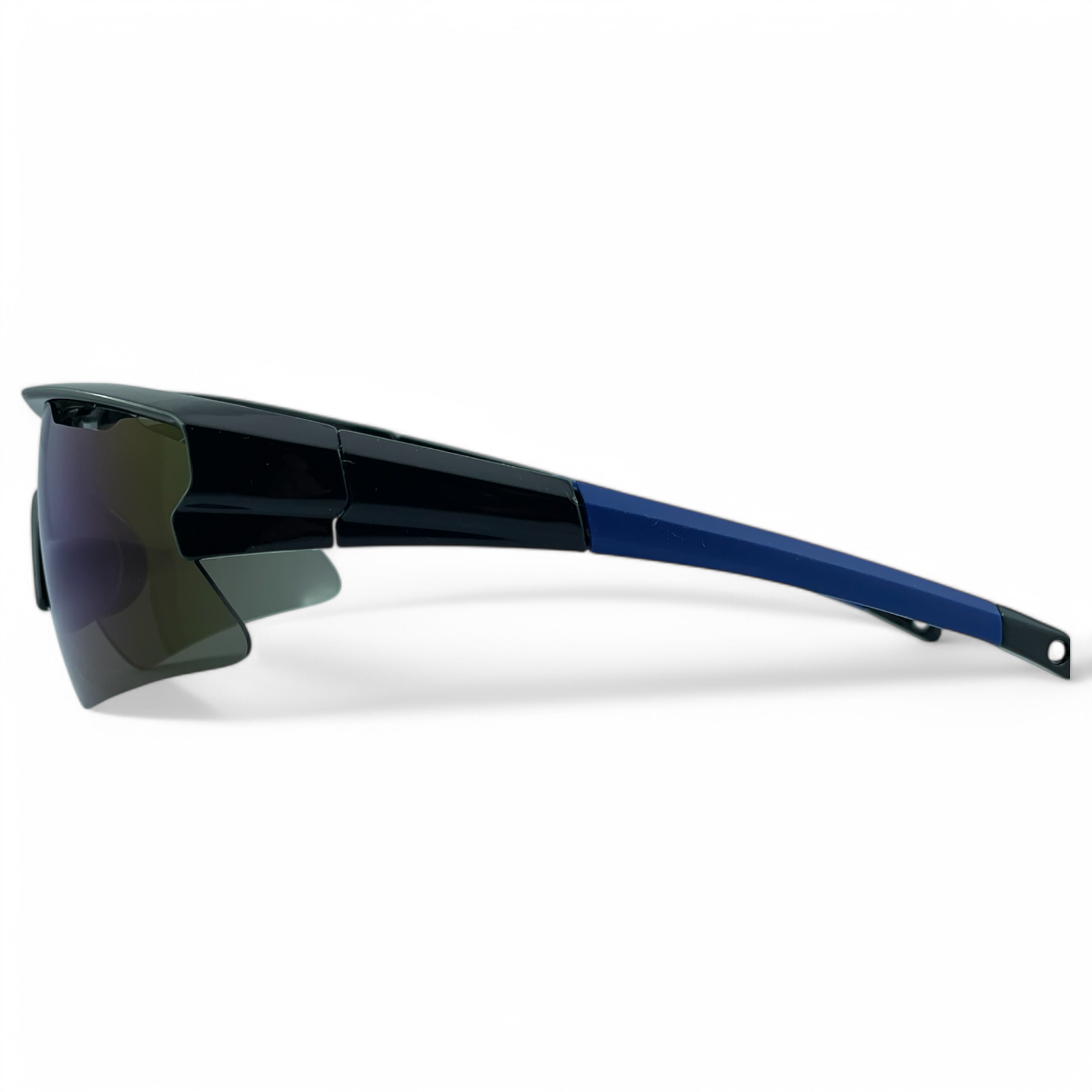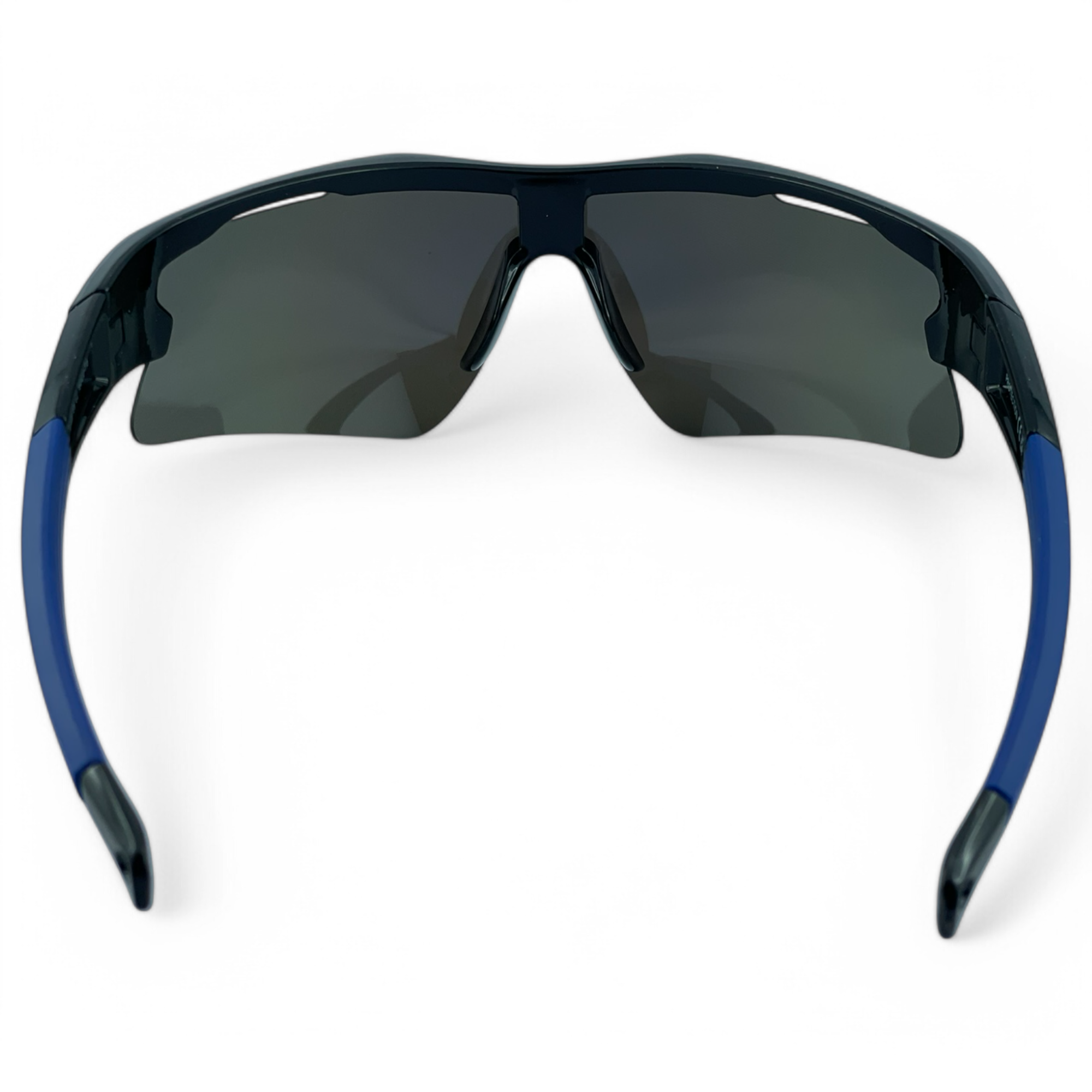 Model PRIUS Miami M106 C2 to nowoczesne okulary sportowe typu maska. Czarna ramka z granatowymi akcentami i lustrzaną niebieską soczewką nadaje całości dynamicznego charakteru. Doskonałe na rower, bieganie i aktywność na pełnym słońcu.