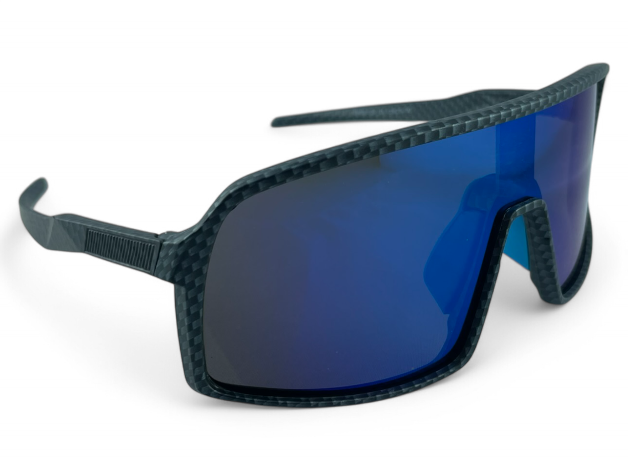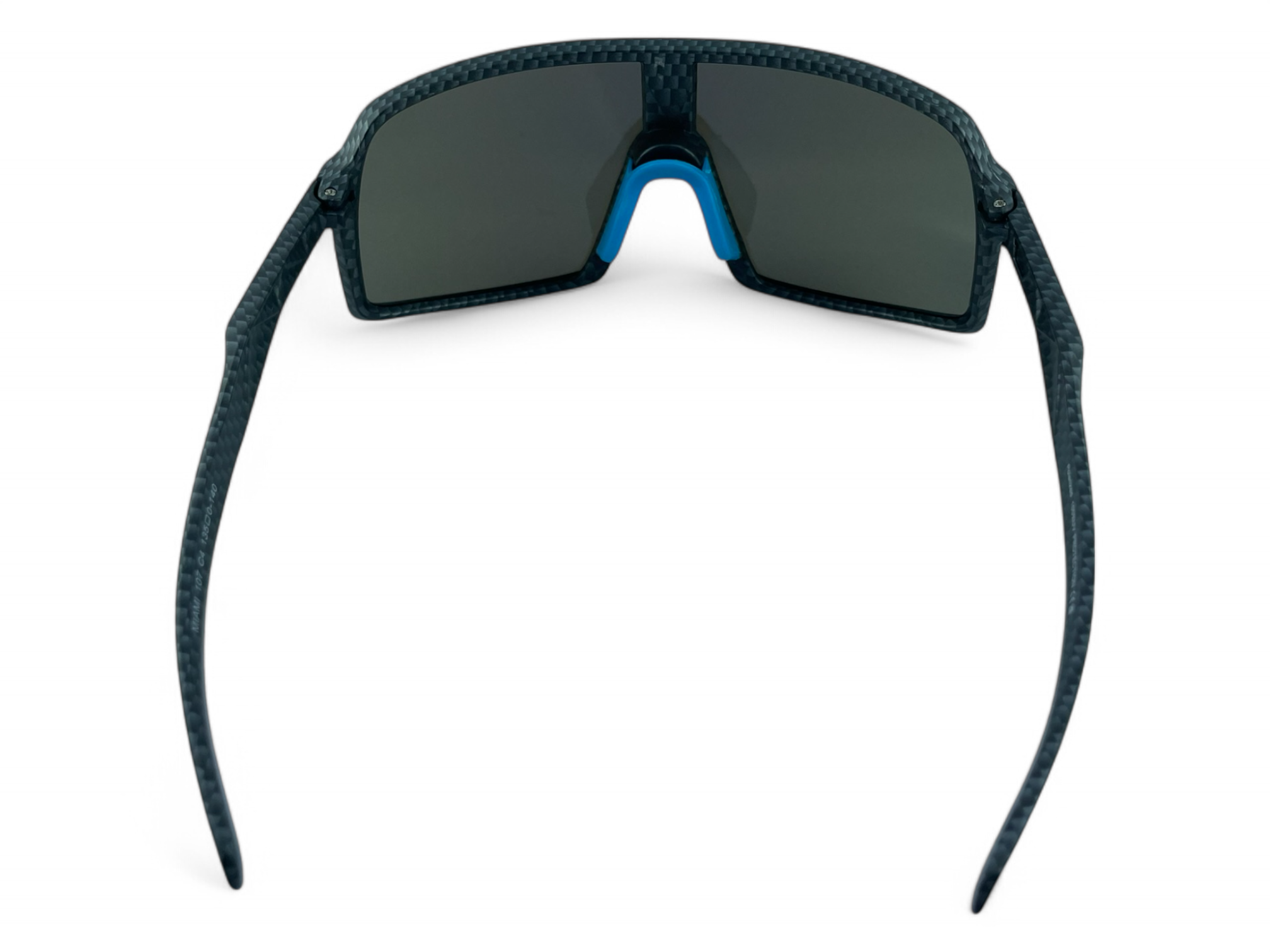 Model PRIUS Miami M107 C4 to sportowe okulary przeciwsłoneczne w czarnej matowej oprawce z wykończeniem a'la carbon. Niebieska lustrzana soczewka zapewnia skuteczną ochronę i nowoczesny wygląd podczas każdej aktywności outdoorowej.