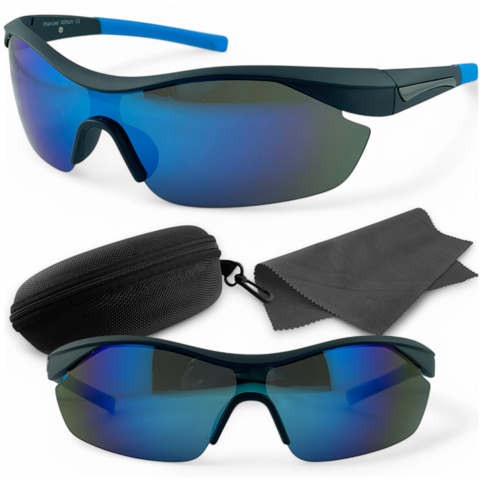 Okulary rowerowe PRIUS Miami M112 C2 – polaryzacja HD, UV400, maska czarna z niebieską soczewką