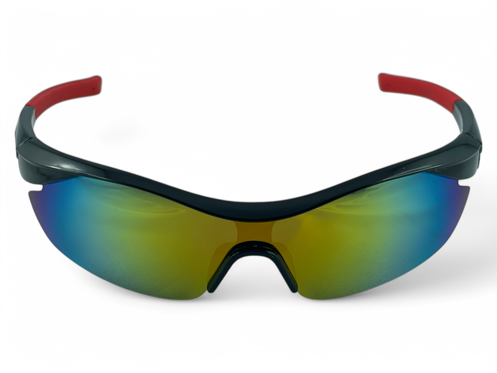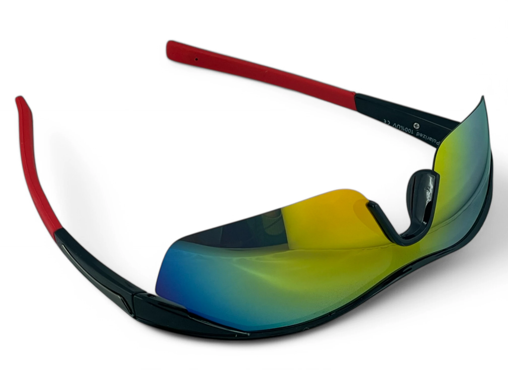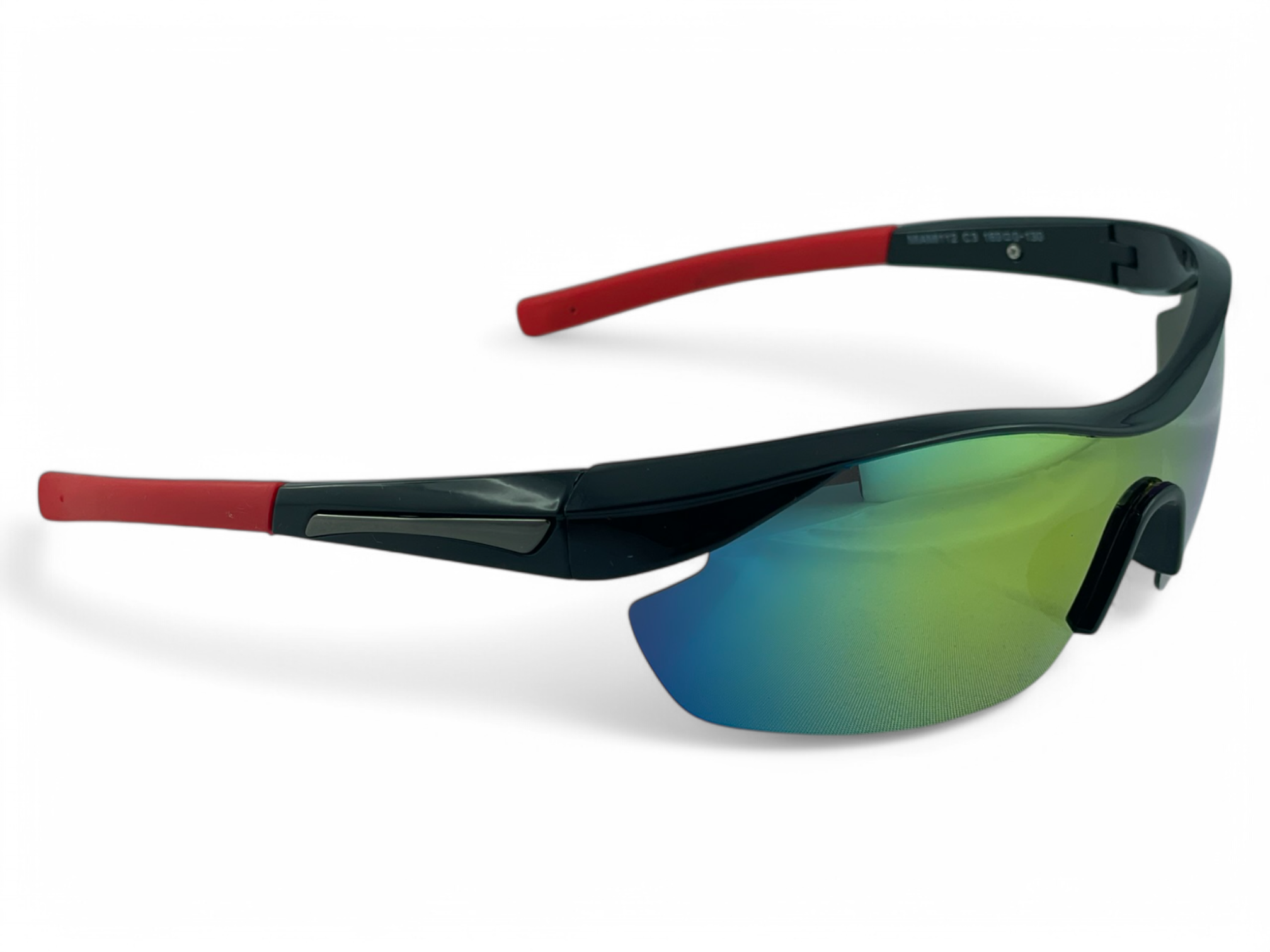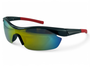 Model PRIUS Miami M112 C3 to sportowe okulary przeciwsłoneczne typu wrap z czarną ramką i efektownymi złotymi soczewkami. Znakomite połączenie stylu i ochrony – na rower, trening i słoneczne dni.
