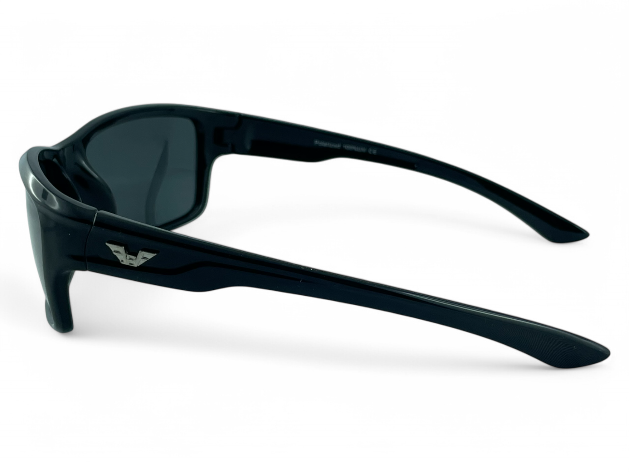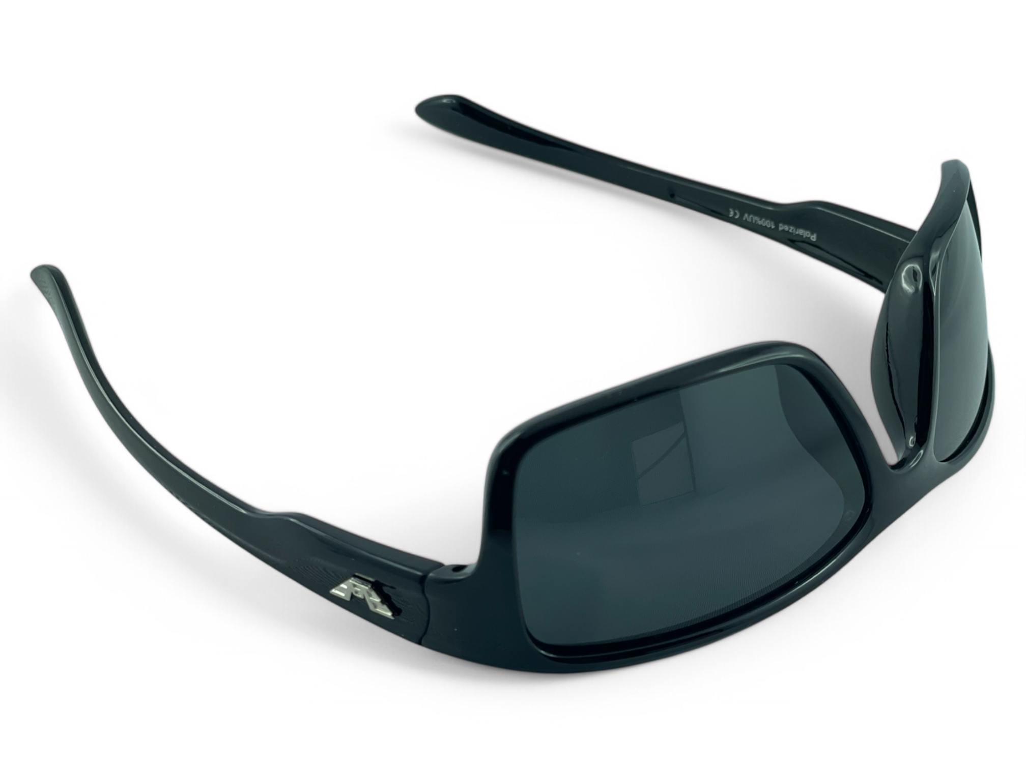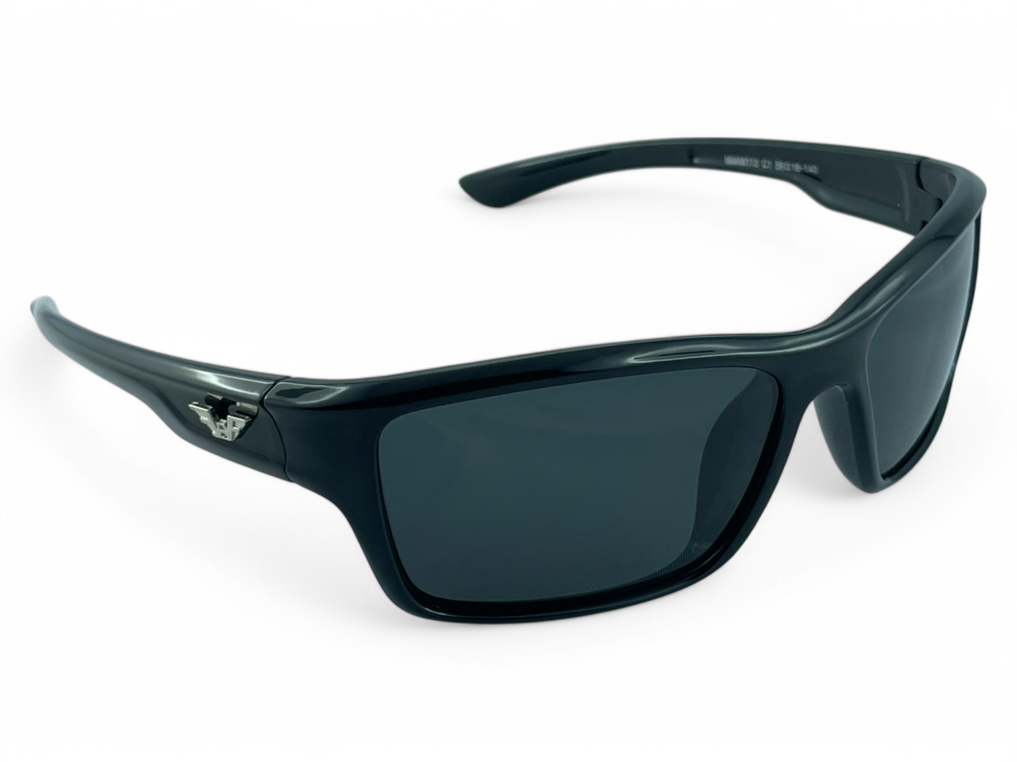 Model PRIUS Miami M113 C1 to pełnoramkowe sportowe okulary przeciwsłoneczne w głębokiej czerni. Klasyczna konstrukcja z prostokątnymi soczewkami i metalowym logo na zauszniku wyróżnia je w codziennym użytkowaniu.
