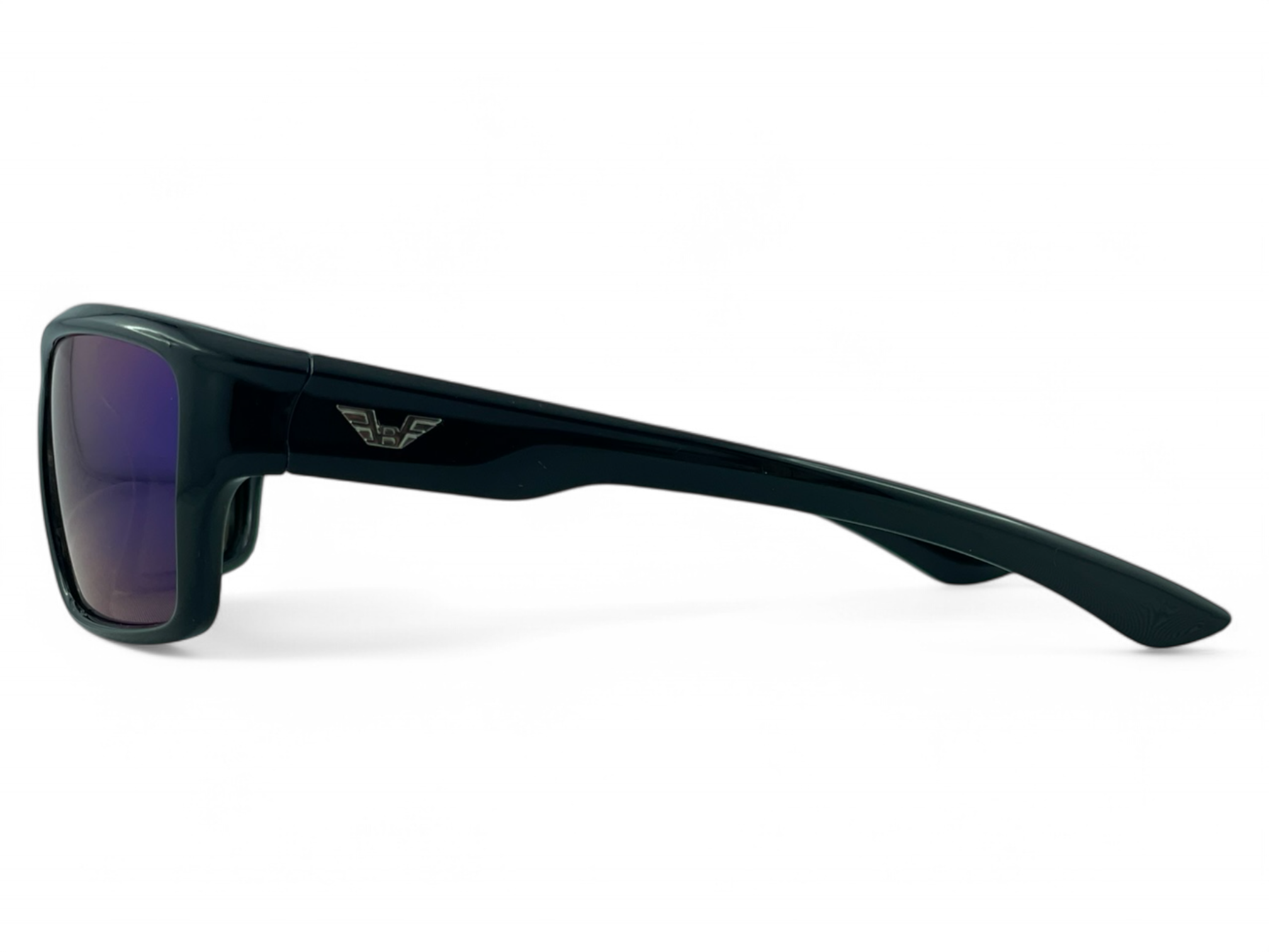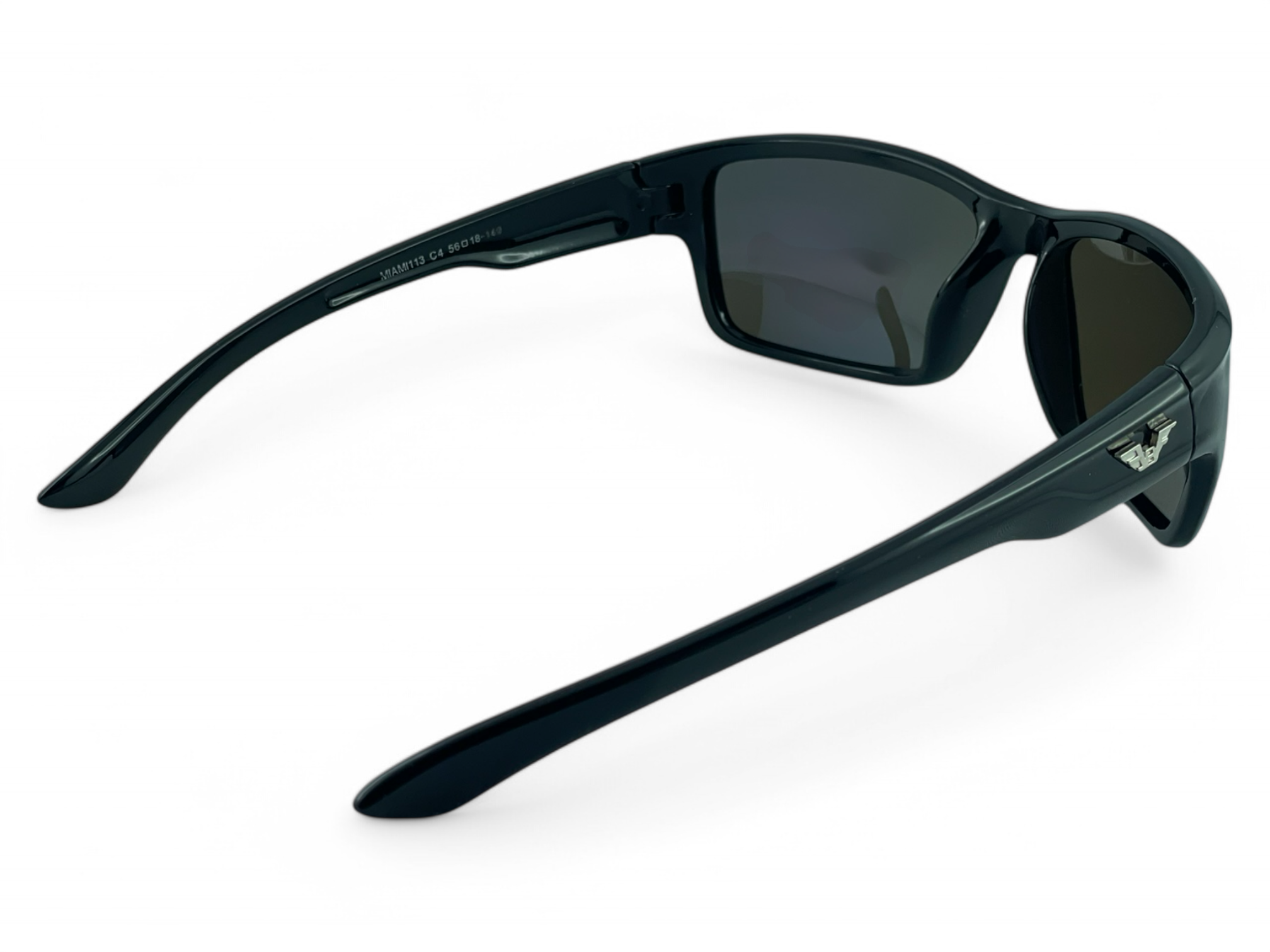 Model PRIUS Miami M113 C4 to sportowe okulary przeciwsłoneczne z błyszczącą czarną ramką typu piano black i intensywną niebieską lustrzaną soczewką. Klasyczna forma w nowoczesnym, dynamicznym wydaniu.