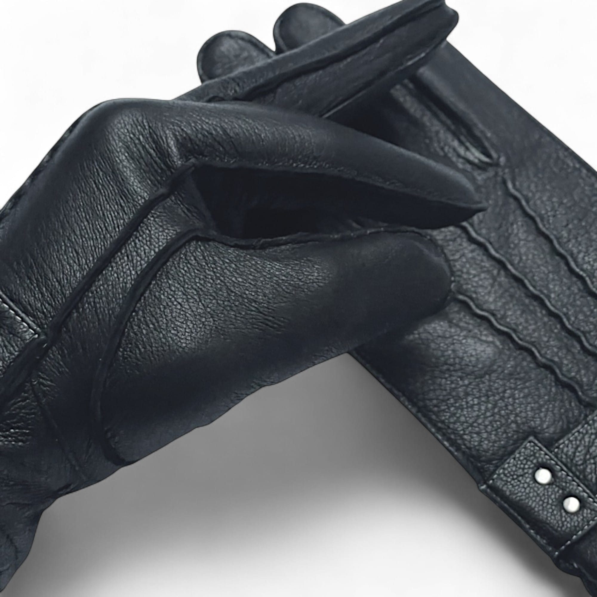 Model PRMG-2009 to męskie rękawiczki zimowe wykonane z naturalnej skóry owczej, które łączą ponadczasową elegancję, funkcjonalność i komfort użytkowania. Czarna skóra o wyraźnej, szlachetnej fakturze, klasyczne potrójne przeszycia na wierzchu oraz starannie wykończona linia palców sprawiają, że model ten doskonale uzupełni zarówno casualowe, jak i bardziej formalne stylizacje.